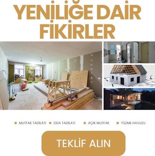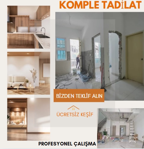 Komple Ev Tadilat Dekorasyon: Hayallerinizdeki evi gerçeğe dönüştürün! Komple ev tadilatı ve dekorasyon hizmetlerimizle, yaşam alanlarınızı baştan aşağı yenileyerek size özel, konforlu ve estetik mekanlar yaratıyoruz. Mutfaktan banyoya, duvarlardan döşemeye kadar her detayı sizinle birlikte planlıyor, en kaliteli malzemeleri kullanarak kusursuz işçilik sunuyoruz. Elektrik, su tesisatı, sıva, boya, döşeme gibi tüm işleri kapsayan kapsamlı hizmetlerimizle, evinizin her köşesini hayal ettiğiniz gibi dekore ediyoruz.