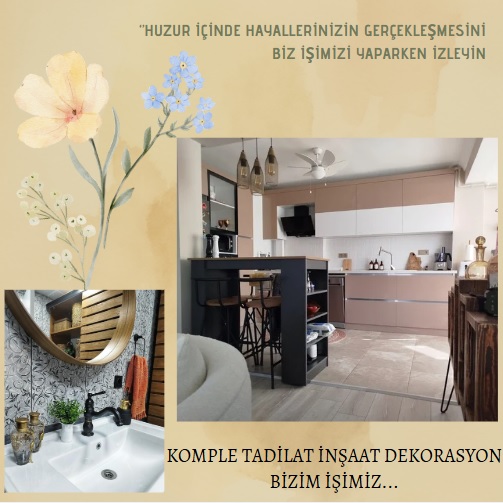 Komple Dekorasyon İşleri: Hayallerinizdeki evi gerçeğe dönüştürün! Komple dekorasyon hizmetlerimizle, yaşam alanlarınızı baştan aşağı yenileyerek size özel, konforlu ve estetik mekanlar yaratıyoruz. Mutfaktan banyoya, oturma odasından yatak odasına kadar evinizin her köşesini hayal ettiğiniz gibi dekore ediyoruz.